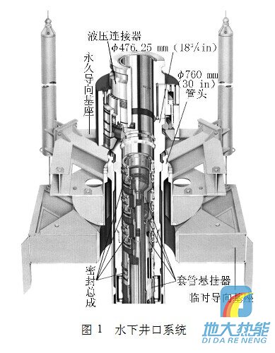 臨時導(dǎo)向基座用于定井位,是首先下入的設(shè)備,坐在海底泥線上;永久導(dǎo)向基座安裝在臨時導(dǎo)向基座之上,通過連接在導(dǎo)向柱上的導(dǎo)向繩引導(dǎo)后續(xù)工具的入井及設(shè)備的安裝;?762mm(30in)導(dǎo)管頭懸掛導(dǎo)管坐落在永久導(dǎo)向基座內(nèi),用專用下入工具隨永久導(dǎo)向基座同時下入;?476.25mm(183 /4in)高壓井口頭下部連接表層套管,坐落在導(dǎo)管頭內(nèi),通過液壓連接器連接水下防噴器;各層技術(shù)套管通過套管掛和密封總成懸掛在高壓井口頭內(nèi)。