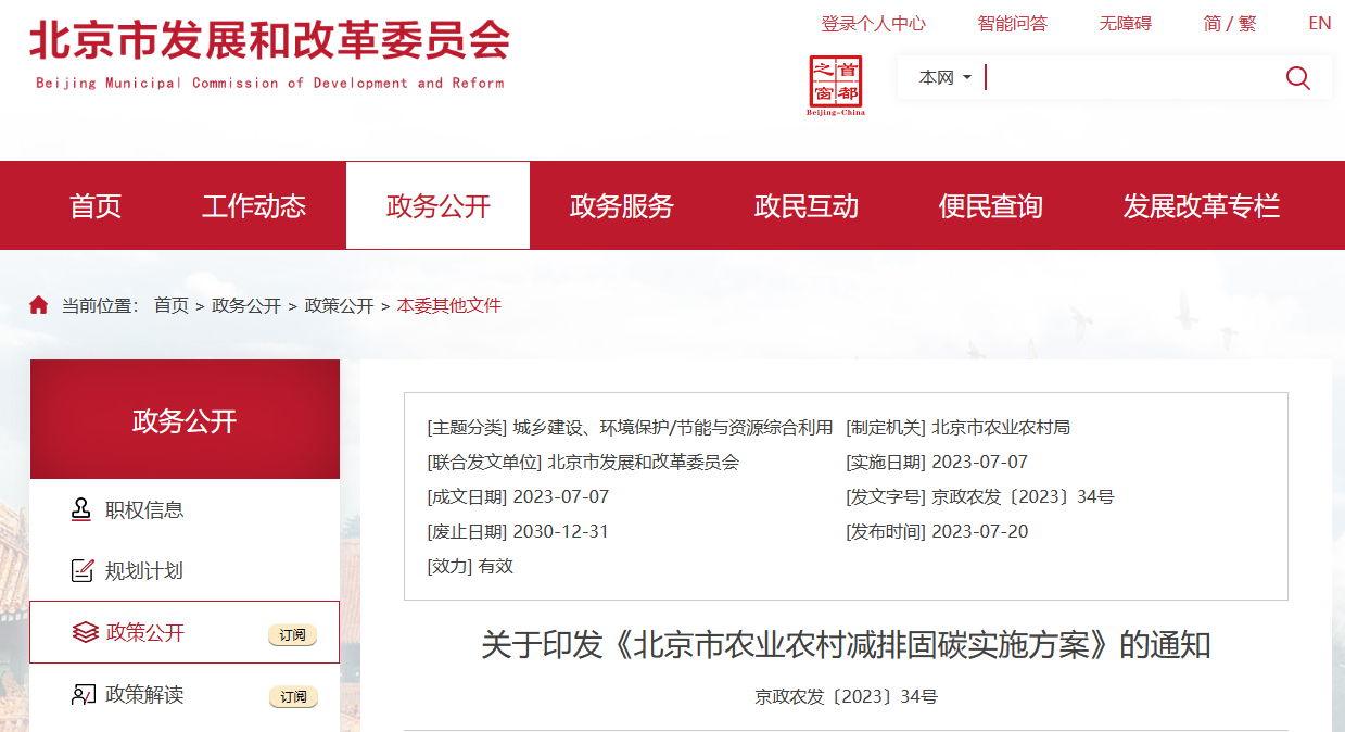 7月18日,北京市農(nóng)業(yè)農(nóng)村局關(guān)于印發(fā)《北京市農(nóng)業(yè)農(nóng)村減排固碳實(shí)施方案》的通知。